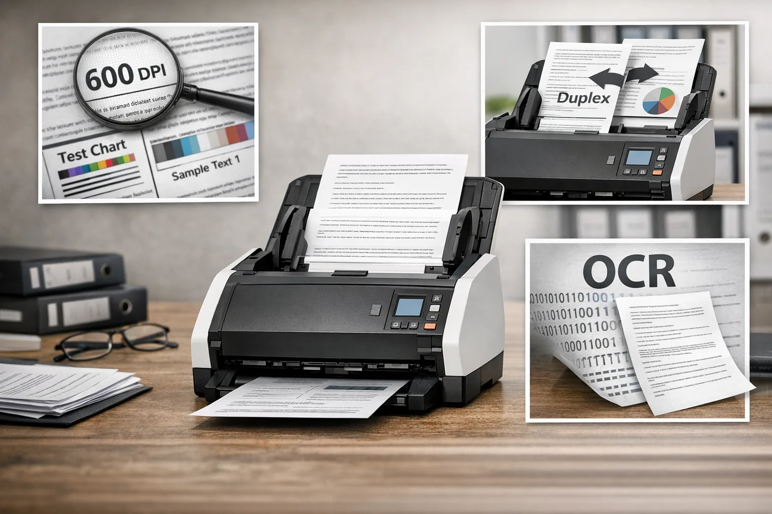 Wenn du einen Scanner wählst, beeinflussen vier Kernfunktionen das Ergebnis am stärksten. Diese Funktionen bestimmen die Bildqualität. Sie beeinflussen die Geschwindigkeit beim Scannen. Sie haben auch Folgen für die Folgekosten. Die vier Schwerpunkte sind Auflösung, Duplex, ADF und OCR. Jede Funktion löst typische Probleme oder kann neue Anforderungen erfüllen.